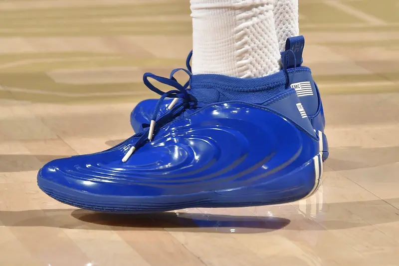 比赛中,哈登上脚潮流服装品牌The Marathon Clothing联名adidas Harden Vol.10“Marathon”。