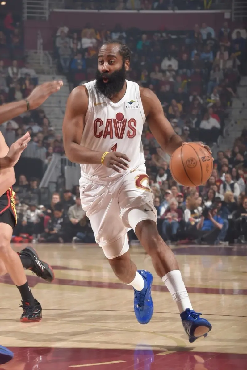 虎扑04月09日讯 今日NBA常规赛骑士122-116战胜老鹰。本场比赛,骑士队球员詹姆斯-哈登出战34分钟,投篮23中6,三分球10中4,罚球5中5,得到21分5篮板4助攻2抢断。比赛中,哈登上脚潮流服装品牌The Marathon Clothing联名adidas Harden Vol.10“Marathon”。来源:Getty Images虎扑04月0...